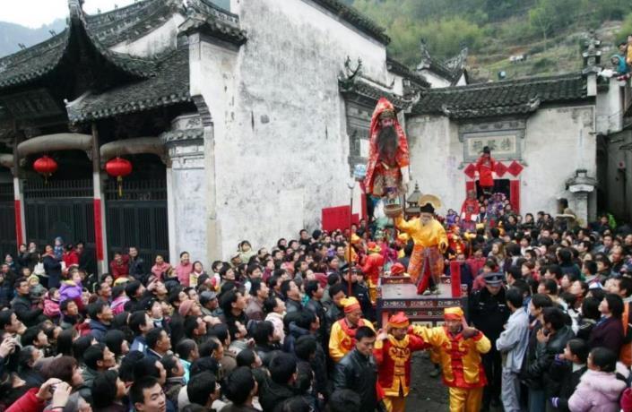 景区村庄湖村非遗项目秋千抬阁吸引游客驻足观看。纪雯缕摄
